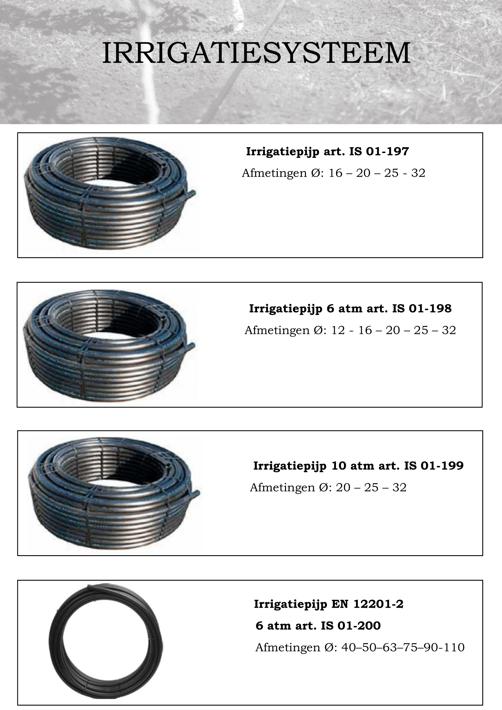 Optimaliseer je oogst met innovatieve irrigatiesystemen op maat van Nicolai Protect Systems. Wij bieden oplossingen die zorgen voor efficiënt watergebruik en een gezonde gewasgroei, zelfs onder de meest uitdagende weersomstandigheden. Hieronder vindt u een catalogus van onze producten.
